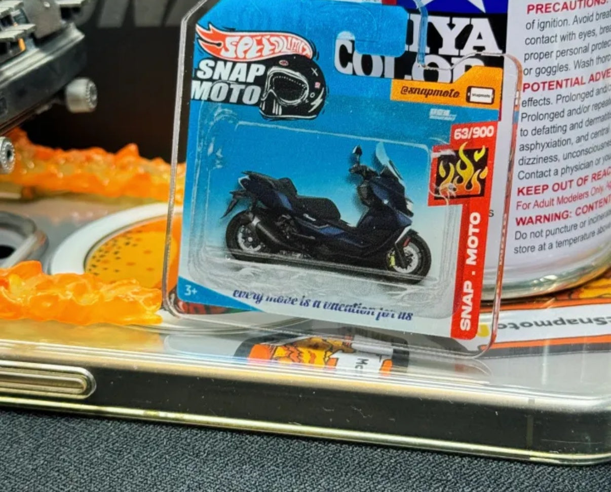 High-definition illustration sandwiched between double-layer crystal acrylic. Waterproof, scratch-resistant, and fadeproof. The precision cut follows every curve of the fairing, capturing the mechanical beauty in 5cm.